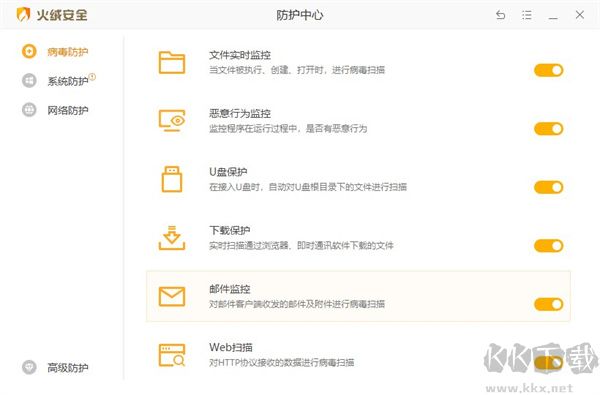 U盤保護(hù):對外接U盤即插即掃,防止移動設(shè)備傳播病毒。