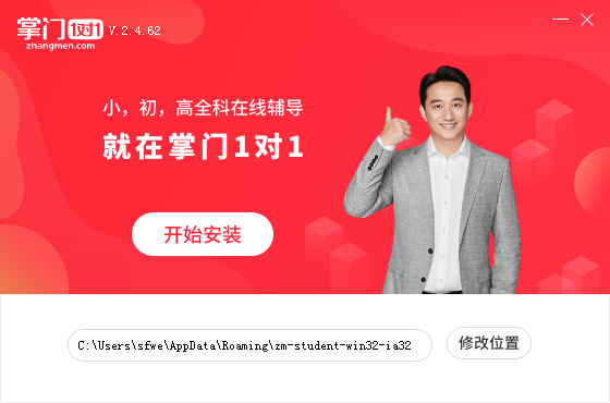 掌門1對1的安裝客戶端下載完成后直接雙擊.exe文件,選擇軟件保存位置,點(diǎn)擊開始安裝
