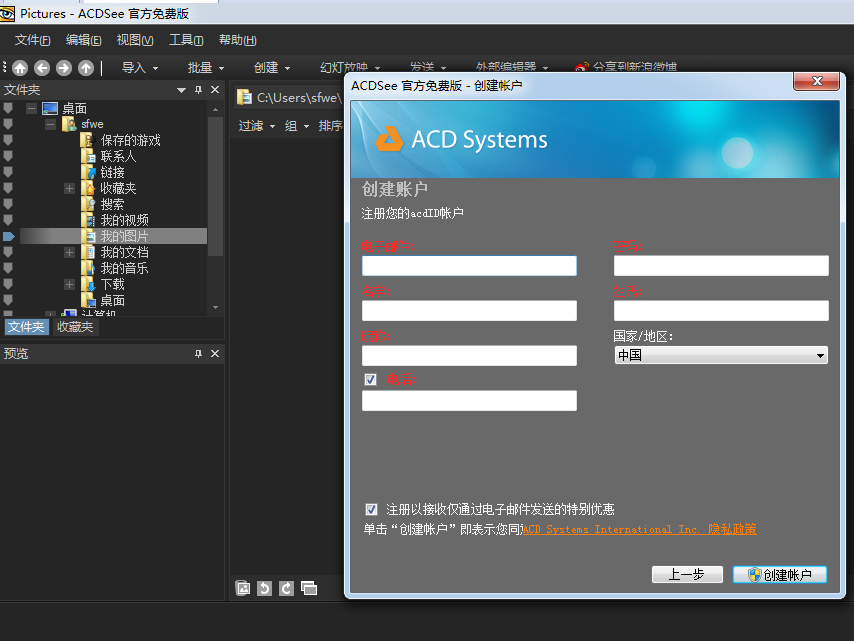 ACDSee 官方免費(fèi)版僅限于個(gè)人用戶,不得用于商業(yè)用途。單擊[下一步(N)]繼續(xù)。