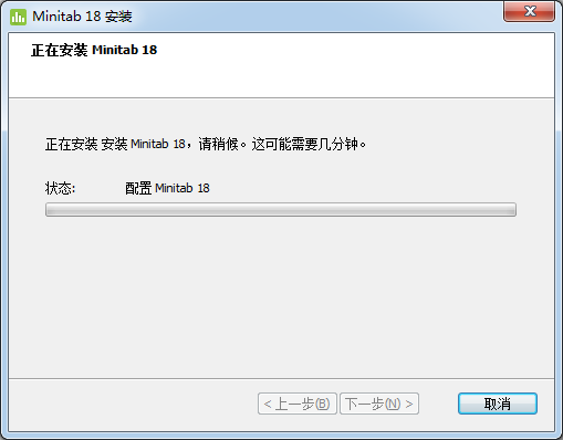 6.正在安裝安裝Minitab 18,請(qǐng)稍候。這可能需要幾分鐘。