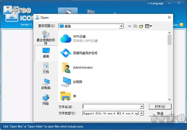 1、解壓后,open files,選擇要提圖標的EXE、DLL、OCX、CPL或CIL文件