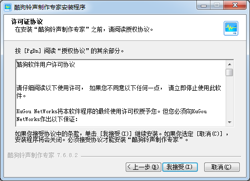在安裝“酷狗鈴聲制作專家”之前,請閱讀授權協(xié)議。