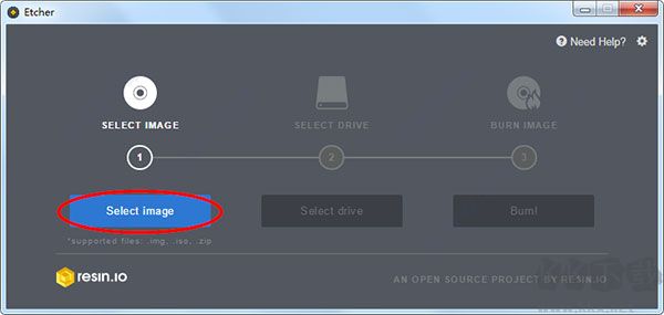 2、選擇刻錄的目標(biāo)介質(zhì),Etcher支持光盤、U盤、SD卡等主流鏡像文件