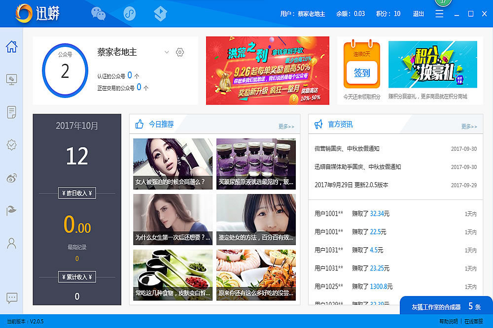 迅蟒自媒體營銷助手是一款素材豐富,可以幫助用戶們進(jìn)行素材編輯,獲取熱點資訊以及素材收集的專用于自媒體領(lǐng)域的輔助工具。編輯功能強大,多賬號登錄,同步文案內(nèi)容,主要擁有素材編輯器、熱點風(fēng)向標(biāo)、多媒體素材庫等功能,使用它可以從來管理微信公眾號,接發(fā)廣告單,包括文字、圖片、視頻等,是搞自媒體人的絕佳好幫手!