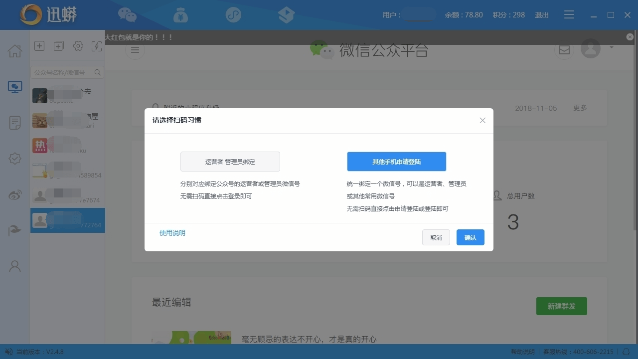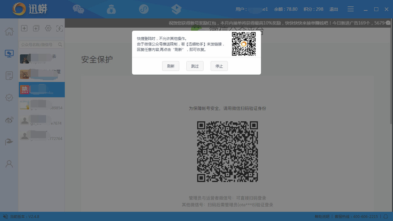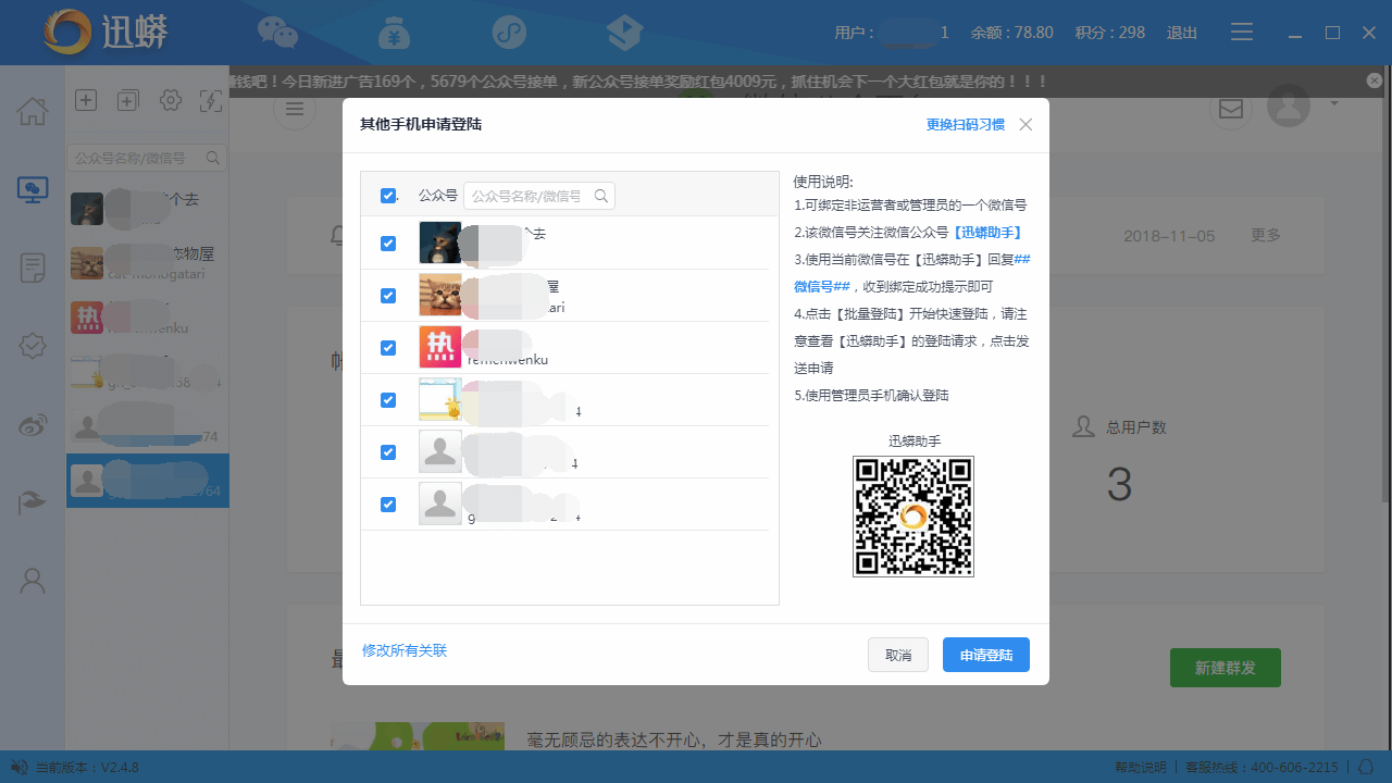點擊我的公眾號最右側(cè)新增的閃電圖標(biāo),即可進(jìn)入批量登陸功能