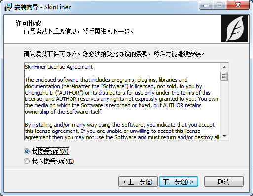 2.歡迎使用SkinFiner安裝向?qū)П鞠驅(qū)⒃谀碾娔X上安裝skinFiner 3.0建議您在維續(xù)之前關(guān)閉其他所有應(yīng)用程序。點(diǎn)擊"下一步“組續(xù),或"取消退出安裝向?qū)А?br />