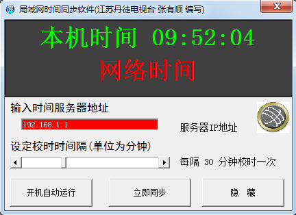 局域網時間同步工具是一款使用非常簡單的時間同步服務器,無需時間服務器,只需要在局域網電腦上運行軟件,指定需要同時的局域網計算機IP地址,該工上就會自動和指定的IP的電腦時間同步!讓對時間同步有需求的公司和單位非常實用! PS,內置兩款工具 使用方法: 1、打開工具之后,我們先制定服務器IP地址,可以是局域網中任何一臺電腦的IP; 2、點擊立即同步即可同時時間,之后可以按自己設置的時間間隔進行同步。