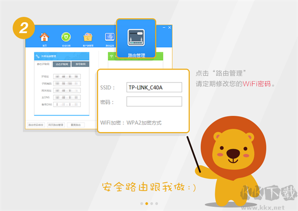 路由器聯(lián)網(wǎng)以后,最重要的一件事情就是給WiFi設(shè)置密碼,用戶可以在路由管理功能下找到設(shè)置WiFi密碼的地方。瑞星路由安全衛(wèi)士默認(rèn)WPA2的加密方式。在這里小編稍微解釋下,目前市面上主流的路由器基本上都支持WEP、WPA及WPA2三種加密方式,其中WEP是許多路由器出廠默認(rèn)的設(shè)置,但是這種加密方式極易遭到破解,黑客只需要在網(wǎng)上下載個破解工具,幾秒鐘就可以搞定密碼。WPA2則是三種加密方式中最保險的一種,破解難度大且成本高,因此推薦使用這種模式。