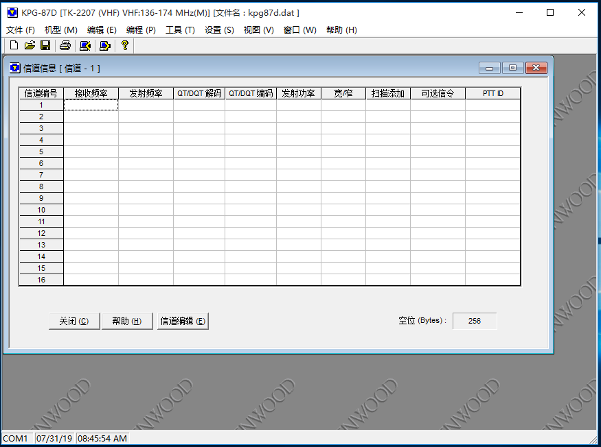 對講機(jī)寫頻軟件(KPG-87D),這是一款通用性極強(qiáng)的對講機(jī)寫頻工具,功能完善、操作靈活,它可以對對講機(jī)進(jìn)行寫頻操作,支持修改信道信息,KPG-87D這個對講機(jī)編程寫頻軟件支持85%的國產(chǎn)對講機(jī)型號,操作簡單,功能豐富,能夠?qū)χv機(jī)的基本信道信息進(jìn)行修改,還擁有測試模式等功能。進(jìn)行編程,建議您首先使用本軟件輸入所有必要的編程數(shù)據(jù),并將這些數(shù)據(jù)保存到電腦中。完成編程數(shù)據(jù)之后,使用所存儲的數(shù)據(jù)對對講機(jī)進(jìn)行編程。如果需要,可以打印出編程數(shù)據(jù)。您還可以讀取對講機(jī)數(shù)據(jù)并在電腦上進(jìn)行修改。