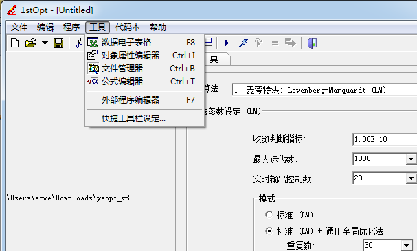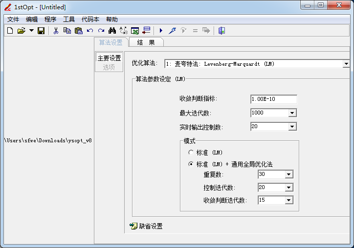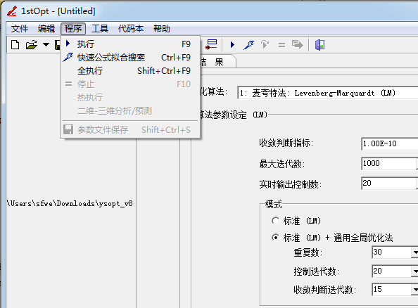 2、文件這里是查看.mff的地址,可以打開您下載的1stOpt15PRO.exe參數(shù)配置全部的調(diào)試方法