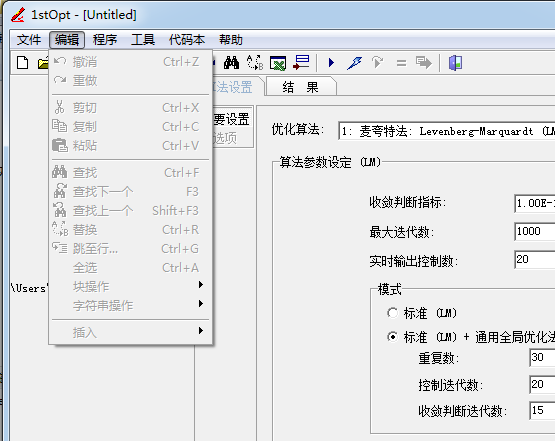 1、下載軟件,點(diǎn)擊1stOpt15PRO.exe啟動,進(jìn)入界面,顯示優(yōu)化算法 方式,可以選擇算法參數(shù)設(shè)定,支持收斂判斷指標(biāo)