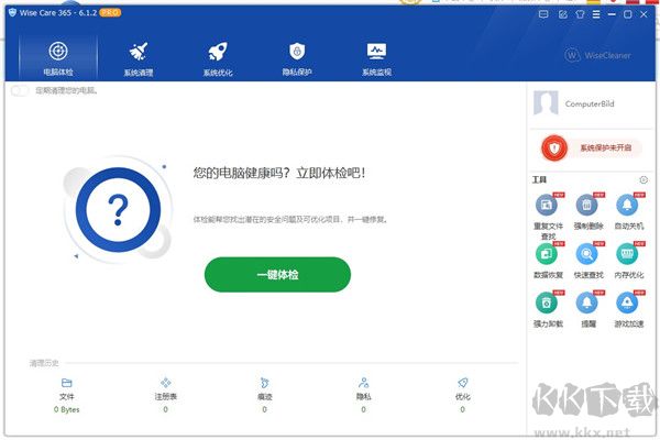 6、除了提供一鍵檢測(cè)與修復(fù)服務(wù)外,還包含系統(tǒng)清理、系統(tǒng)優(yōu)化、隱私保護(hù)及Wise工具四大模塊,旨在幫助用戶完成全方位的電腦維護(hù)任務(wù)。