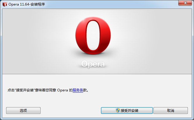1.將kkx帶來(lái)的Opera11解壓到本地,打開安裝程序,點(diǎn)擊接受并安裝;