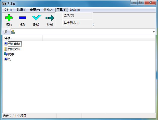 1、打開7-zip,然后點(diǎn)擊工具-選項(xiàng);