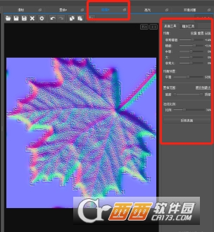 細節(jié)是這個葉子紋理上的細節(jié),表面比例是這個凹陷下去的一個比例。確定ok后到這個頁面,默認是在置換,我們切換到法線,旁邊的那些參數也可以在進行一次調整