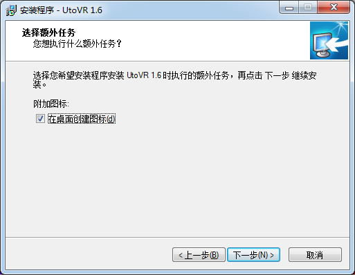 選擇您希望安裝程序安裝UtoVR 1.6時(shí)執(zhí)行的額外任務(wù),再點(diǎn)擊下一步繼續(xù)安裝。