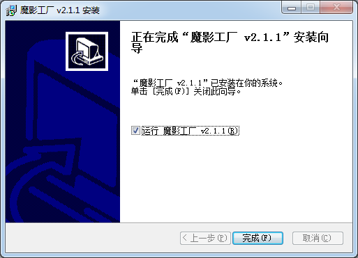 絡(luò)個(gè)向?qū)⒅敢阃瓿?ldquo;魔影工廠(chǎng)v2.1.1”的安裝進(jìn)程。