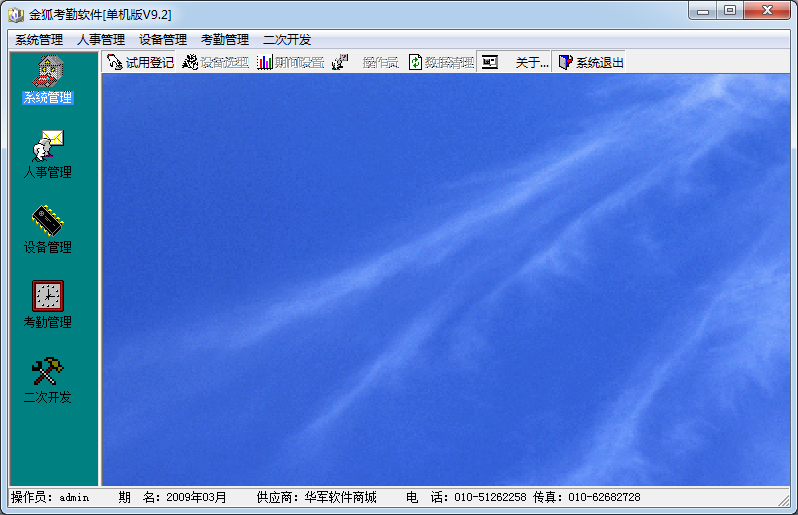 系統(tǒng)管理: 試用登記/用戶注冊、數(shù)據(jù)連接、期間設(shè)置、操作員管理和關(guān)于本軟件的版權(quán)聲明及其供應(yīng)商的聯(lián)系方式等都是本軟件系統(tǒng)管理的范圍。