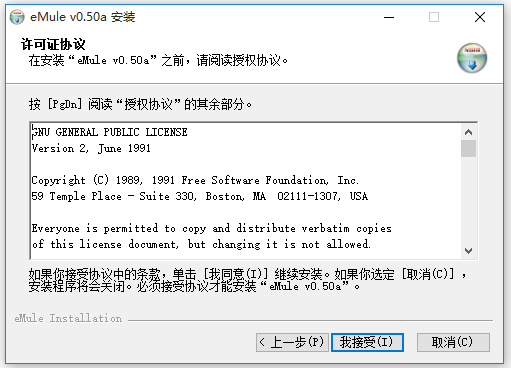 在安裝“eMule v0.50a”之前,請閱讀授權(quán)協(xié)議。