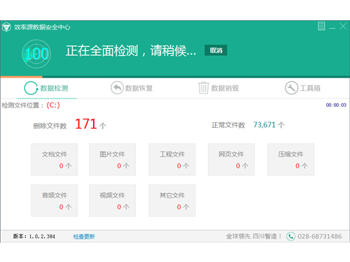 效率源數(shù)據(jù)安全中心可根據(jù)需要進(jìn)行全盤掃描或分盤掃描,更為快捷。同時支持深度掃描,完全展現(xiàn)刪除文件和正常文件。