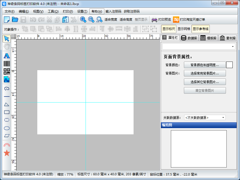 神奇條碼標(biāo)簽打印軟件是一款非常強(qiáng)大的支持條碼打印,標(biāo)簽打印的軟件!神奇條碼標(biāo)簽打印軟件具備條碼生成、二維碼生成、多種圖形、矢量圖標(biāo)、行業(yè)標(biāo)志等,內(nèi)置652個(gè)矢量圖標(biāo)隨意選擇,讓用戶將標(biāo)簽條碼內(nèi)容輕松打印。支持自定義條碼內(nèi)容,同時(shí)可以將淘寶訂單列表批量生成條碼標(biāo)簽,是一款,專業(yè)實(shí)用的條碼標(biāo)簽制作打印軟件。已破解,自帶注冊(cè)碼,歡迎有需要的用戶前來(lái)獲?。?br />