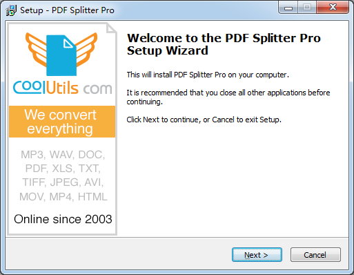 This will install PDF Splitter Pro on your computer.