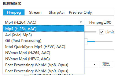 4、視頻編碼器包括4種,另外輸出格式包括mpeg, gif, avi, steam;