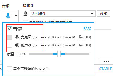 7、注意音頻有兩個來源,電腦本身的聲音和你說話的聲音,你自己按照自己的需要來勾選。