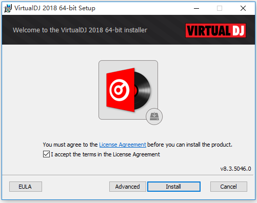 下載Virtual DJ混音軟件,解壓壓縮包,雙擊.exe文件(根據(jù)系統(tǒng)版本選擇32位或64位),閱讀協(xié)議,勾選【I accept 】,點擊【Install】,