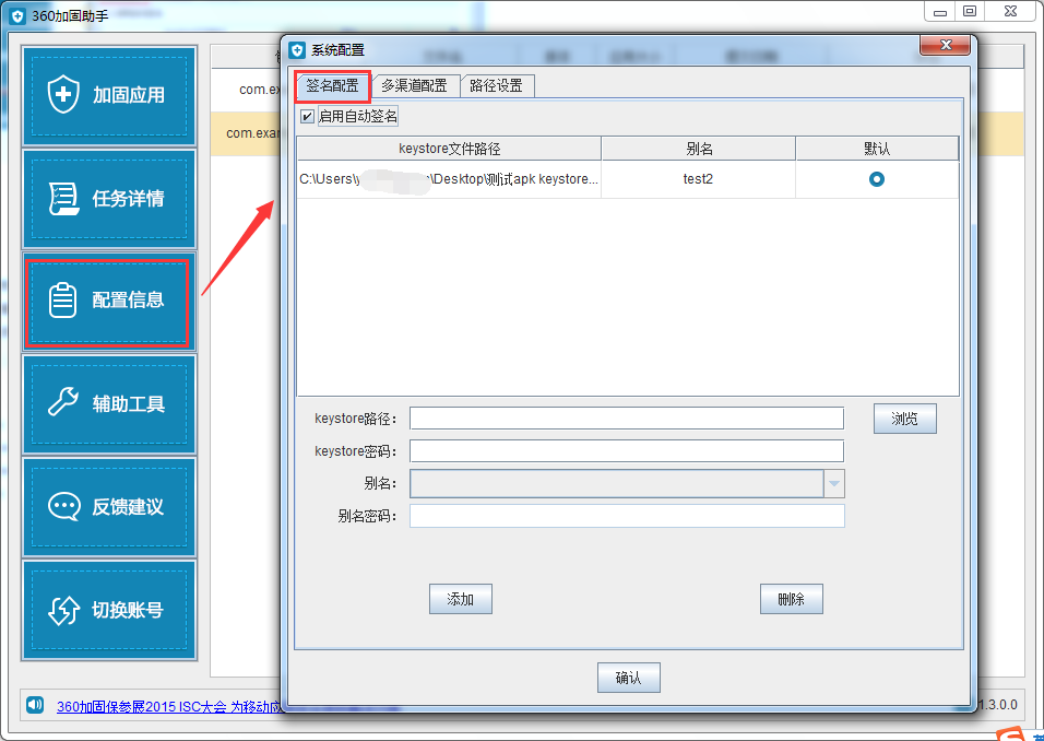 沒有APK原包的簽名文件,可以使用輔助工具內(nèi)的制作簽名功能生成新的簽名文件,配置簽名后重新提交加固。