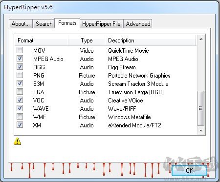 3、彈出的對話框中,切換到format選項卡,;老規(guī)矩選wave,ogg等文件(Dragon UnPACKer同樣可以提取AVI等其他文件)