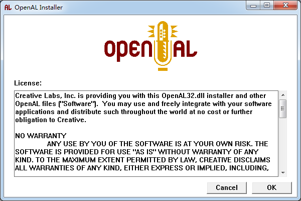 OpenAL的安裝很簡單,運行程序,點擊“OK”,就完成了。沒有很煩瑣的安裝過程。