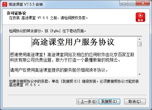 在安裝高途課堂V7T.5.5之前,請檢j閱授權(quán)條款。