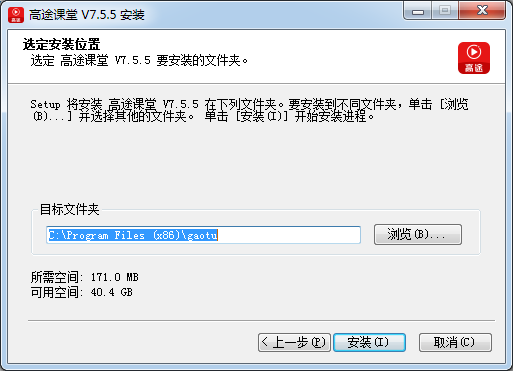 選定高途課堂V7.5.5要安裝的文件夾。
