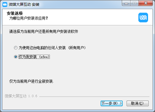 請選擇為當(dāng)前用戶還是所有用戶安裝該軟件