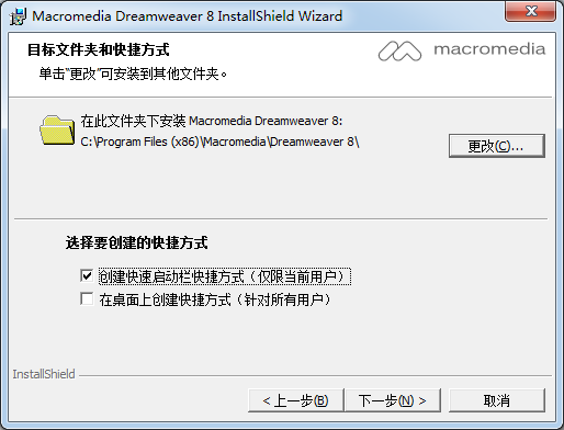 在此文件夾下安裝Macromedia Dreamweaver 8:C:Program Files (x86)Macromedia'Dreamweaver 8\