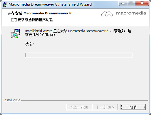 Installshield(R) Wizard將要在您的計算機中安裝MacromediaDreamweaver 8 。要維續(xù),請單擊“下—步。