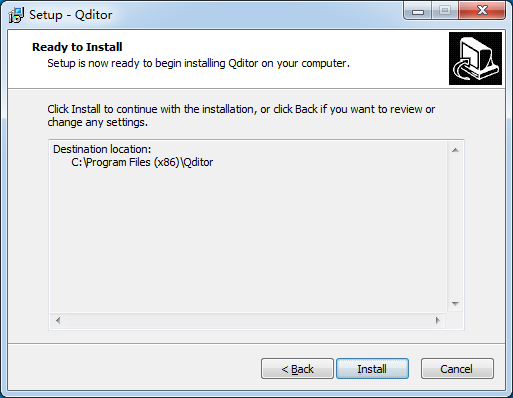 Setup will install Qditor into the following folder.