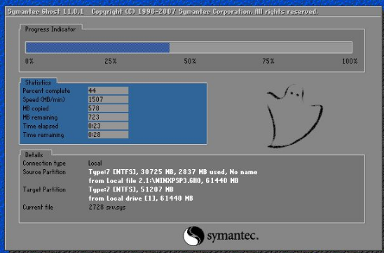 5.數(shù)據(jù)還原之后,電腦會自動重啟,之后進(jìn)入xp系統(tǒng)安裝界面;