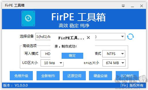 FirPE 工具為內(nèi)置,移除U盤不影響 FirPE 的正常使用