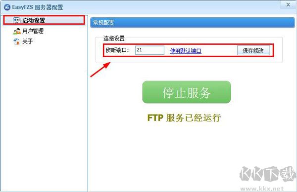 1、打開軟件,設(shè)置好偵聽端口,默認(rèn)為21,可以修改為其它