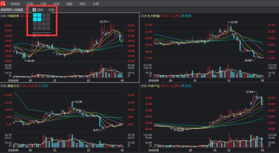 多股同列的入口有兩個:第一個為在行情列表下右鍵,點擊多股同列進入。第二個為在行情列表或者個股K線分時頁面利用快捷鍵ctrl+4、ctrl+6、ctrl+9進入。