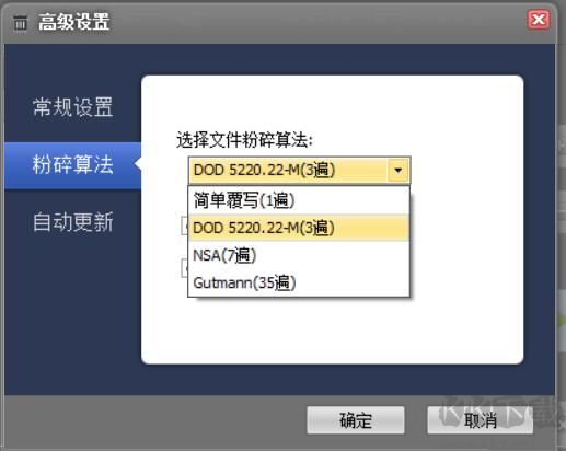 2、點擊“Alogrithms”選項卡,在“粉碎算法”下載框中選擇清除算法。點擊確定即可。
