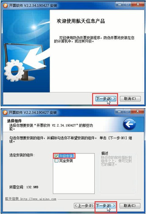 二、將下載的開票軟件V2.2.34.190427解壓,安裝時(shí)點(diǎn)擊“升級(jí)安裝”直到下一步完成即可。