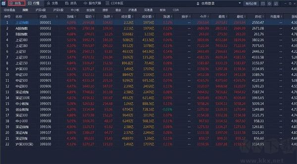 接下來我們就可以試一下怎么將股票添加到自選股中。點(diǎn)擊軟件主界面頂部功能欄中的行情,打開骨片行情頁面。我們可以查看A股、B股、中小板、創(chuàng)業(yè)板等板塊的股票行情;