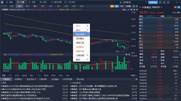 在股票詳情頁面中的空白位置點(diǎn)擊鼠標(biāo)右鍵,展開右鍵菜單。點(diǎn)擊右鍵菜單中的而添加自選,就可以將該股票添加到自選股列表中了;