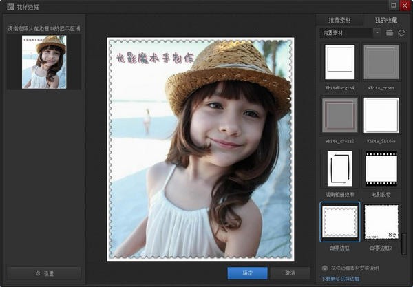 可給照片加上各種精美的邊框,輕松制作個(gè)性化相冊(cè)。除了軟件精選自帶的邊框,更可在線即刻下載論壇光影迷們自己制作的優(yōu)秀邊框。