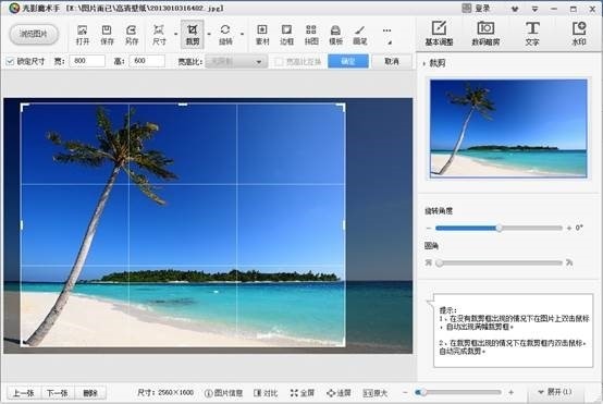 重新打造的界面,更好的交互體驗(yàn)每個(gè)功能的交互都經(jīng)過了精心的優(yōu)化,特別是添加文字、添加水印、基本調(diào)整、裁剪等,用起來更順手。