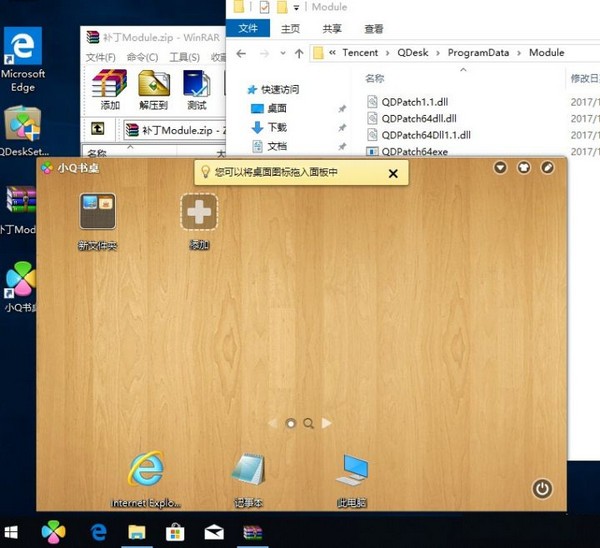 3、找到桌面上的小Q書桌圖標(biāo),右鍵打開文件所在位置。(一般安裝在C:\Program Files (x86)\Tencent\QDesk),并找到目錄ProgramData\Module。完整的路徑例如:C:\Program Files (x86)\Tencent\QDesk\ProgramData\Module4、刪除QDesk\ProgramData\Module目錄下的所有文件,共4個文件:QDPatch1.1.dll、QDPatch64dll.dll、QDPatch64Dll1.1.dll、QDPatch64exe.exe將 補丁Module.zip 內(nèi)的文件解壓到QDesk\ProgramData\Module目錄下,若提示文件正在被使用,請在任務(wù)管理器里關(guān)閉小Q書桌并重新啟動Windows資源管理器即可。