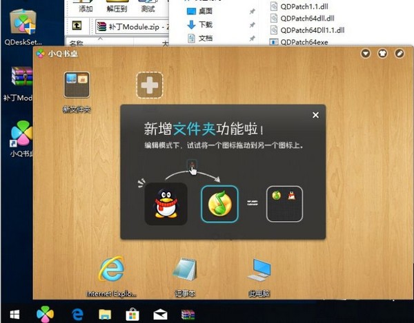 添加:將桌面上的程序快捷方式或文件直接拖進小Q書桌操作界面;